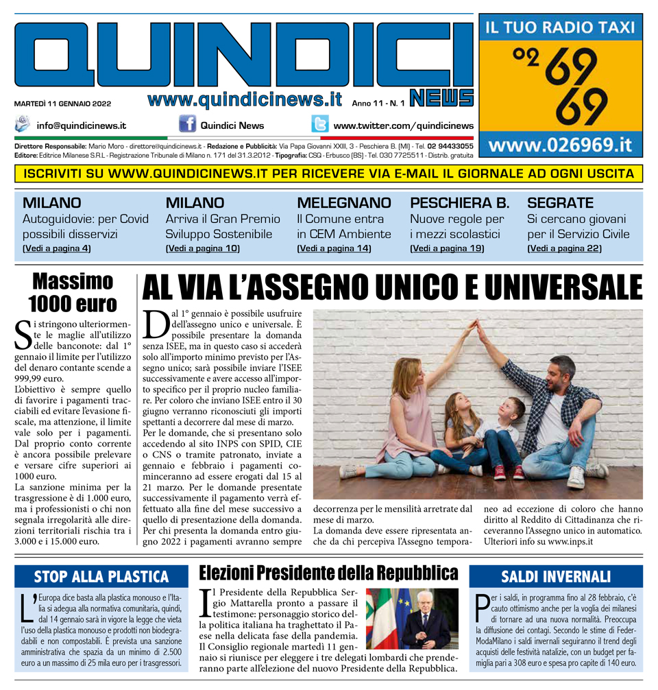 Quindici News Numero 1 dell’11 gennaio 2022