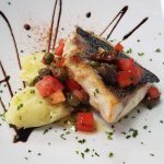 - Filetto di spigola spadellato con patate morbide e salsa crudaiola