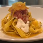 - Tagliatelle con gamberi rossi, burrata e bottarga dei pescatori di Orbetello