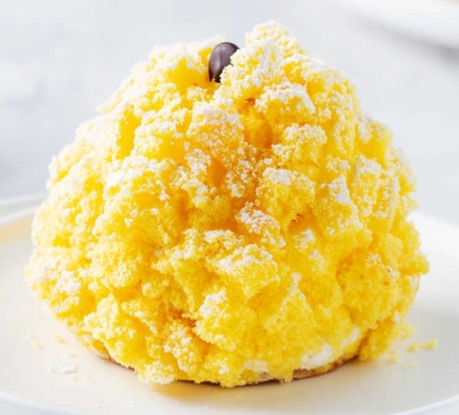 - Monoporzione di mimosa con crema chantilly e frutti di bosco