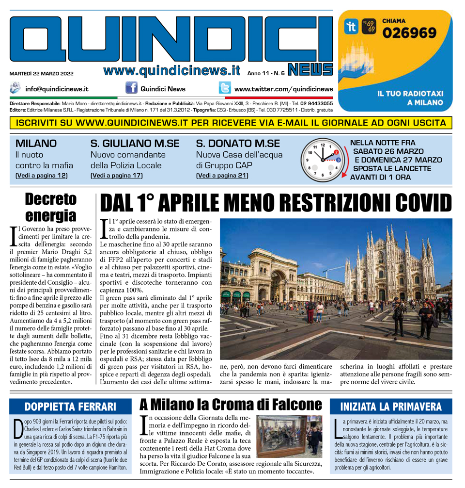 22 marzoedizione cartaceamelegnanomilanopaullopeschiera borromeoquindici newssan donatosan giulianosegrate
