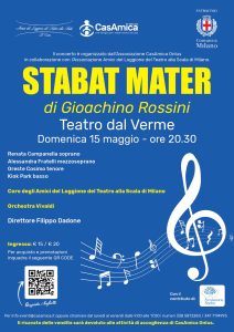 Domenica 15 maggio, alle ore 20.30, lo Stabat Mater di Gioachino Rossini, suonerà al Teatro Dal Verme dedicato a tutte le mamme che affrontano la malattia dei propri figli. In particolare, a quelle i cui bambini devono essere sottoposti a cure lontani da casa e che, insieme a loro, vengono accolte da CasAmica Onlus.