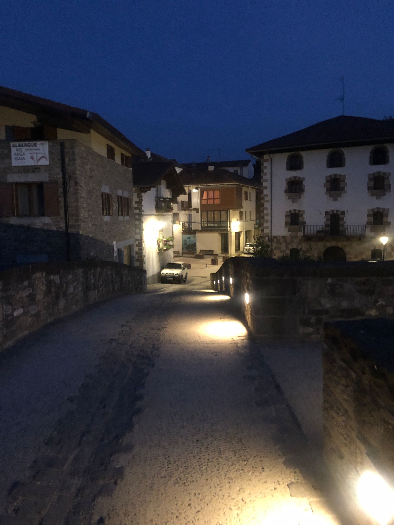 Partenza alle ore 5.40 in solitaria passando per il Puente de La Rabia si entra nel bosco. Si cammina per un po’ al buio utilizzando la lampada frontale. Il paesaggio poi si imbruttisce passando vicino ad un cementificio fino a quando non si sale al paesino di Llarratz dove, dopo una discesa ripida, si rientra nel bosco. Camminata in solitaria, sebbene sul cammino non si sia mai soli, perché si ha sempre qualcuno davanti o dietro.