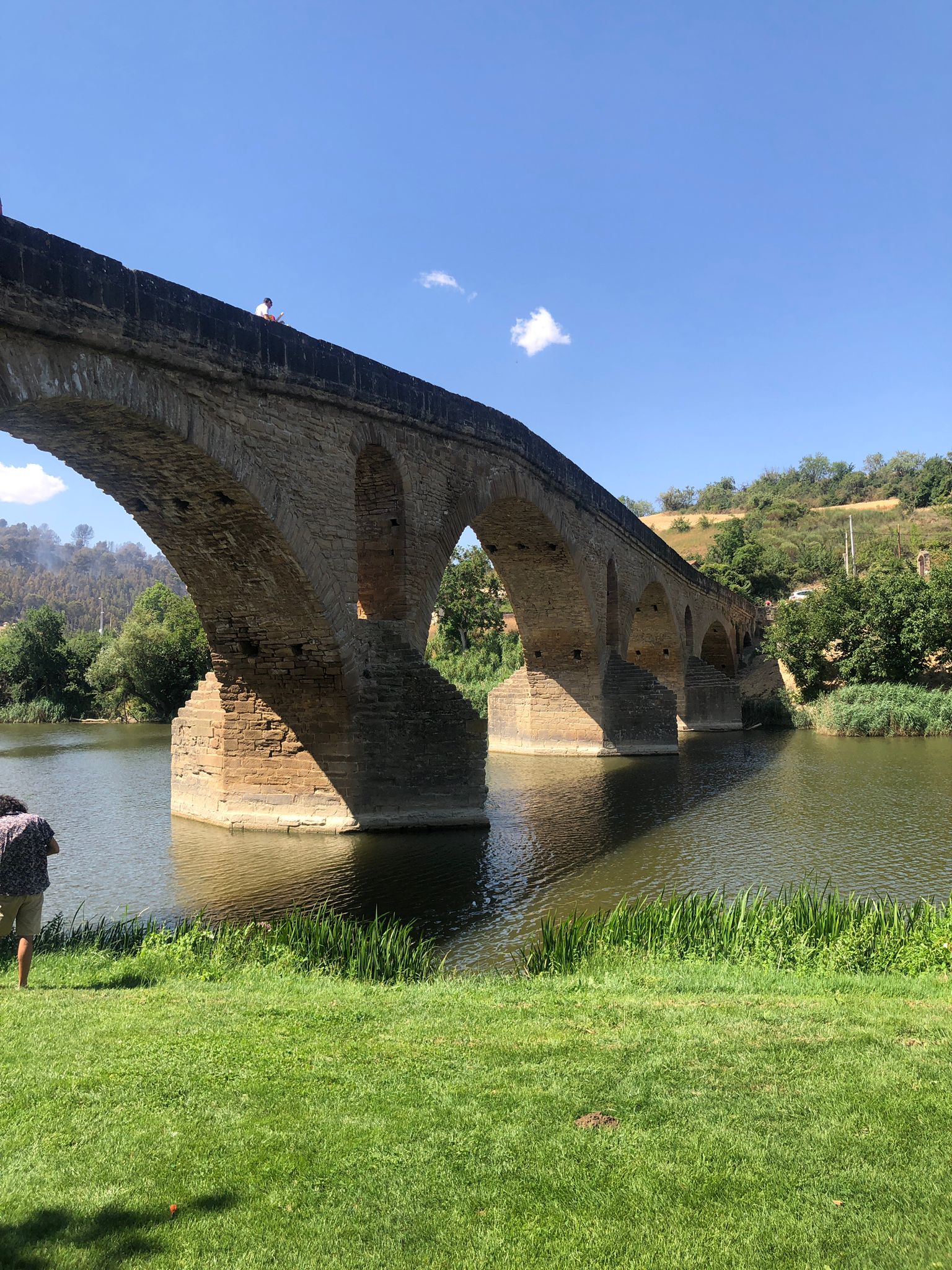 Nel fresco e per il paesaggio da film (in questi boschi della Navarra è stata ambientata la Trilogia di Baztan di Dolores Redondo) la tappa prosegue senza intoppi. Un piccolo food track giallo “Espirito de Camino” che vende gadget pin e dona ristoro gratuito con succhi e caffè freschissimi, poi ancora per i boschi fino a incontrare un piccolo bar in riva al fiume Arga dove dopo 2 ore e mezza di cammino di fa un’altra breve pausa. Qui ci si ritrova con gli altri pellegrini incontrati a Zubiri e poco dopo si prosegue ognuno con il suo passo fino ad Arleta dove il gruppo si ricompatta e sotto il sole si arriva a Pamplona, dopo aver attraversato le cittadine di Trinidad de Arre dal suo ponte romanico sul fiume, Villava e Burlada.
