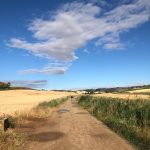 Si cammina tra le colline, con gli ormai caratteristici saliscendi sempre molto dolci ma tra campi di orzo e frumento. Colori bellissimi, il giallo dei campi, il verde delle colline e l’azzurro del cielo. Temperatura freschissima, ventilata. Partenza con circa 13°C fino ad una massima di 20ºC.