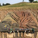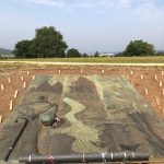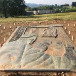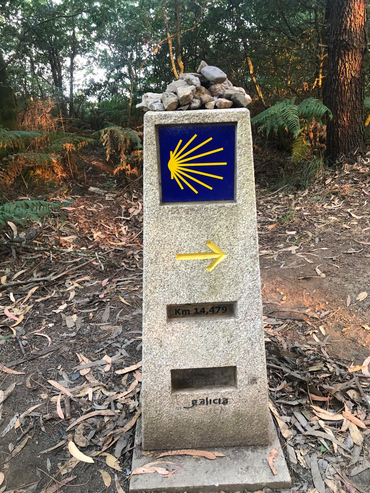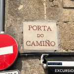 Riprendiamo la marcia e tra lunghe salite e discese, per fortuna non ripide, arriviamo a costeggiare l’aeroporto di Santiago. Ancora qualche chilometro ed ecco la prima insegna su pietra che ci indica che ormai siamo prossimi all’arrivo.