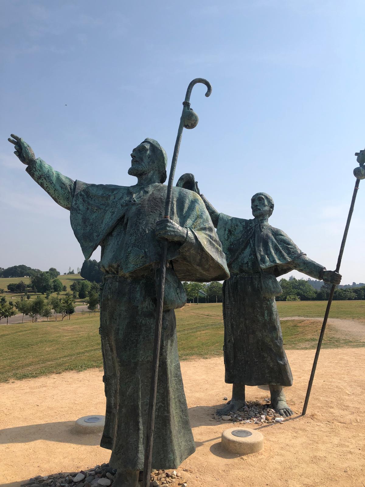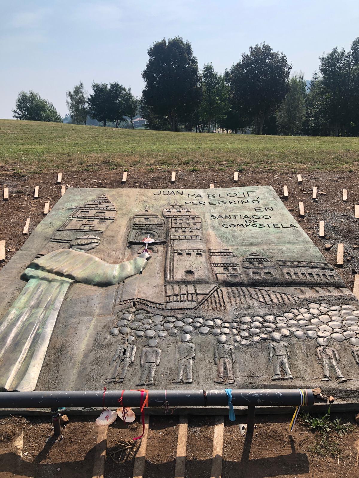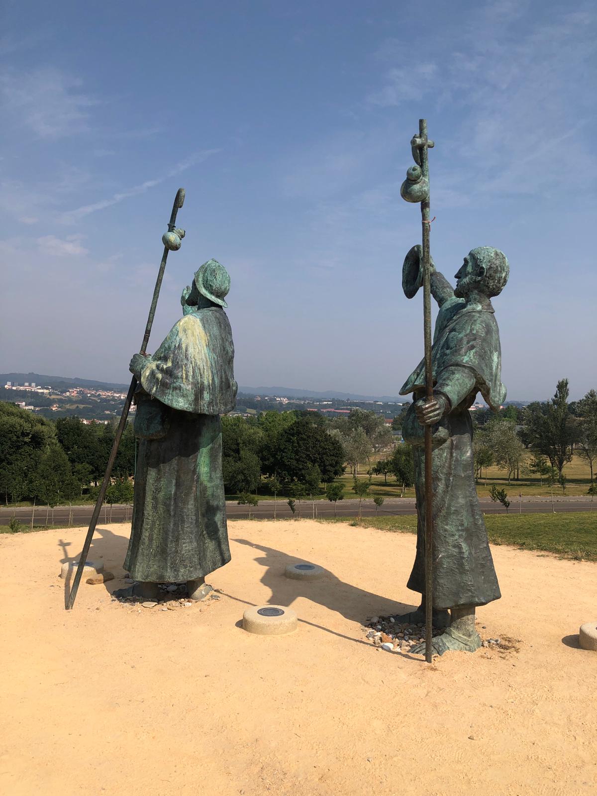 Si ricomincia a salire, mancano 5 chilometri al Monte do Gozo e al suo monumento ai due Pellegrini che indicano la cattedrale.
