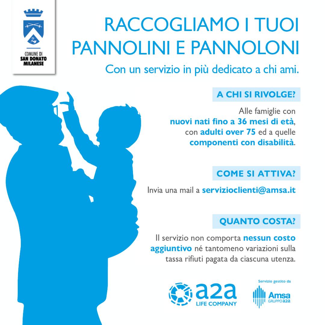 L’ultima novità promossa da Amsa per aiutare le famiglie sandonatesi – qualora comprendano bambini fino ai 36 mesi di età, disabili o anziani over 75 – è il servizio di raccolta a domicilio di pannolini o pannoloni usati (attivabile gratuitamente inviando una mail a servizioclienti@amsa.it).