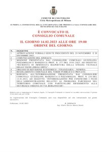 E’ convocato il Consiglio Comunale per il giorno 14 febbraio, alle 19:00, con l’ordine del giorno allegato.