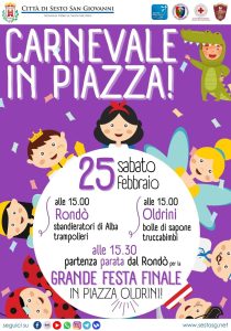 Sabato 25 febbraio festa con sbandieratori, trampolieri, bolle di sapone, truccabimbi in maschera ovviamente!