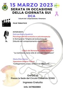 In occasione di questa giornata, ricordiamo a tutta la cittadinanza l’evento organizzato dal Circolo Giovanile di Cerro al Lambro, con il patrocinio dell’Amministrazione Comunale, dedicato ai DCA, cioè i Disturbi del Comportamento Alimentare.