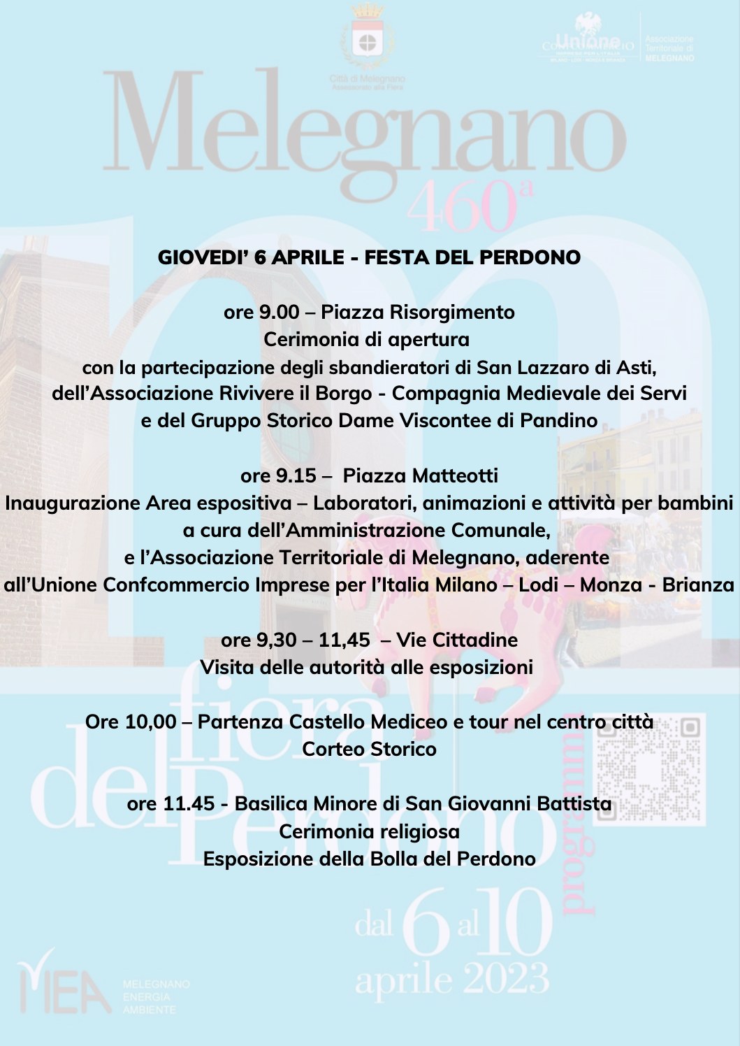 Con la conferenza stampa, si alza ufficialmente il sipario sulla 460esima edizione della Fiera del Perdono che quest’anno riserva grosse novità a cominciare dalla cerimonia civile che si svolgerà mercoledì 5 aprile nel cortile d’onore del Castello Mediceo, trasmessa in diretta streaming su Melegnano Web Tv e sulla pagina Facebook del Comune di Melegnano.