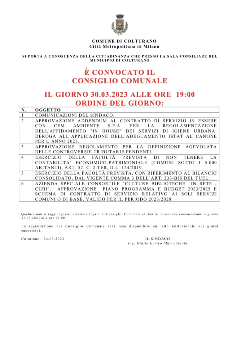 30 marzocolturanoconsiglio comunaleordine del giorno