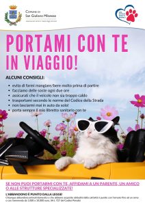 «Accogliere in casa un animale – spiegano gli amministratori comunali – è un gesto che deve essere fatto con consapevolezza, perché un animale fa parte della famiglia che lo ha accolto, anche quando si va in vacanza! Se non puoi portarlo con te, affidalo a mani sicure: un amico, un parente o alle strutture specializzate! Oggi sono accettati in gran parte delle strutture turistiche, dunque perché non portarlo con te? Se stai per partire per una vacanza col tuo pet, leggi i consigli riportati nella locandina per rendere ancora più confortevole e sicuro il vostro viaggio!».