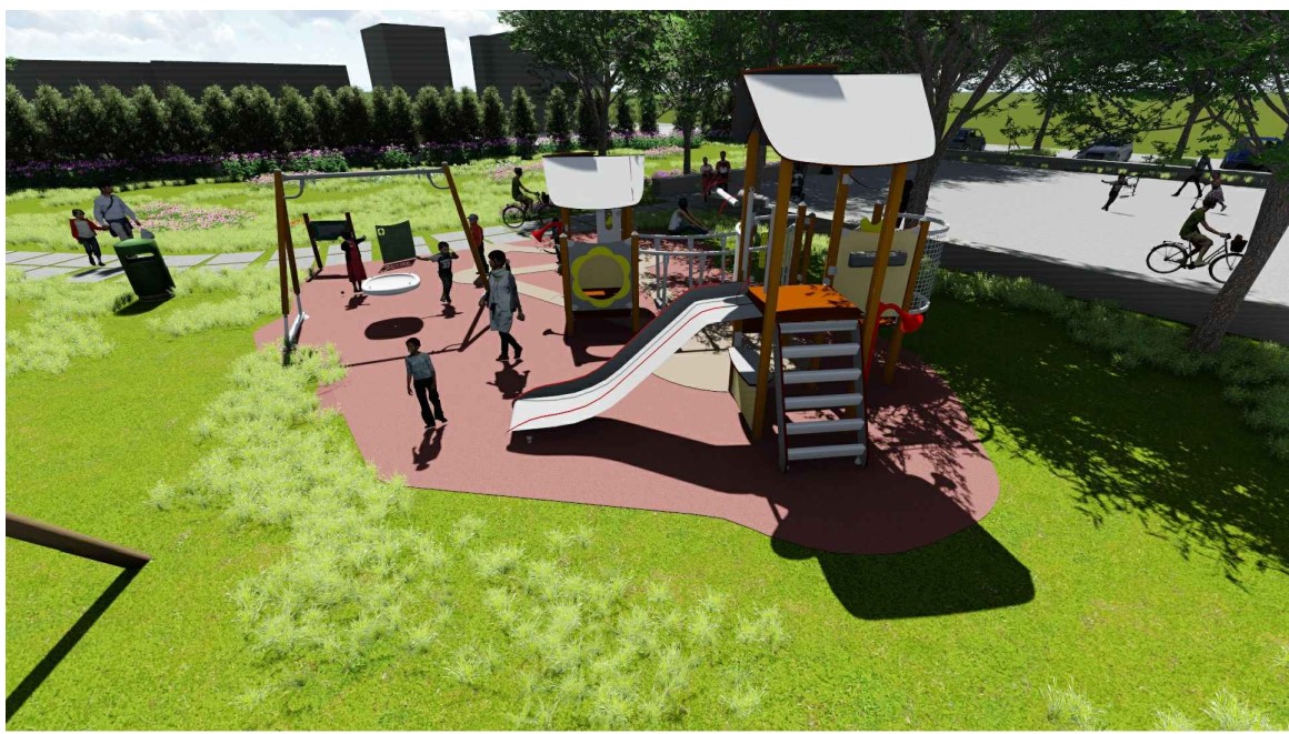 Una volta completata l’installazione di tutti i giochi previsti, sarà posata una pavimentazione in gomma colata a più colori, che offrirà una superficie anti-trauma. Questo contribuirà a rendere l’area di gioco più attrattiva e divertente. Inoltre, il percorso di accesso ai giochi sarà segnato da colori diversi per facilitare il riconoscimento anche da parte di persone ipovedenti.