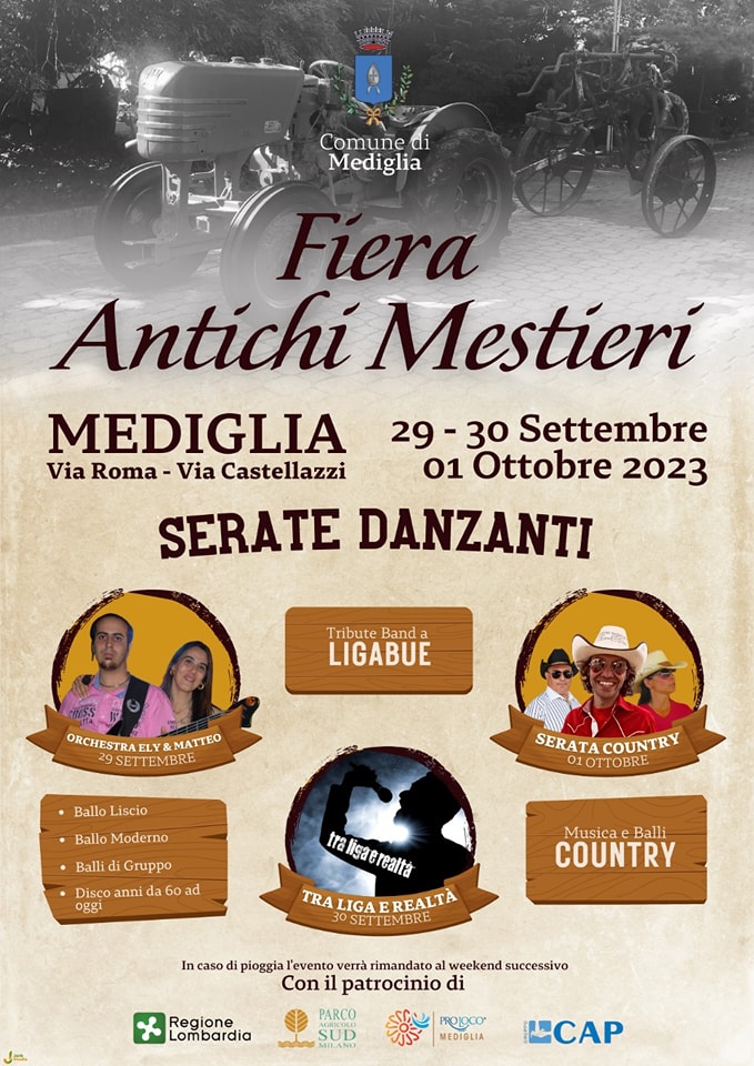 Torna nel fine settimana dal 29 settembre al primo ottobre la “Fiera Antichi Mestieri” a Mediglia in via Roma angolo via Castellazzi.