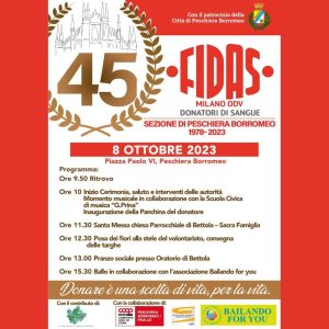 Domenica 8 ottobre festa per i primi 45 di Fidas Peschiera Borromeo – Donatori di sangue!