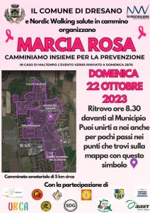 Camminiamo unite, senza bandiere né simboli ma solo come donne! Tutte Insieme! Per la prevenzione! Pochi passi, pochi metri o tutti i 5km, l’importante è esserci! L’appuntamento è per domenica 22 ottobre alle 8.30 davanti al municipio di Dresano.