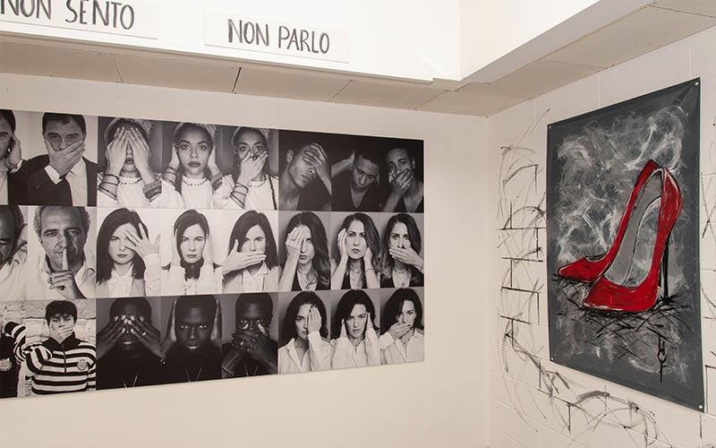 Le immagini invitano il visitatore a riflettere su come la tendenza all’omertà si ripercuota direttamente sulle donne che ne sono tristemente protagoniste.