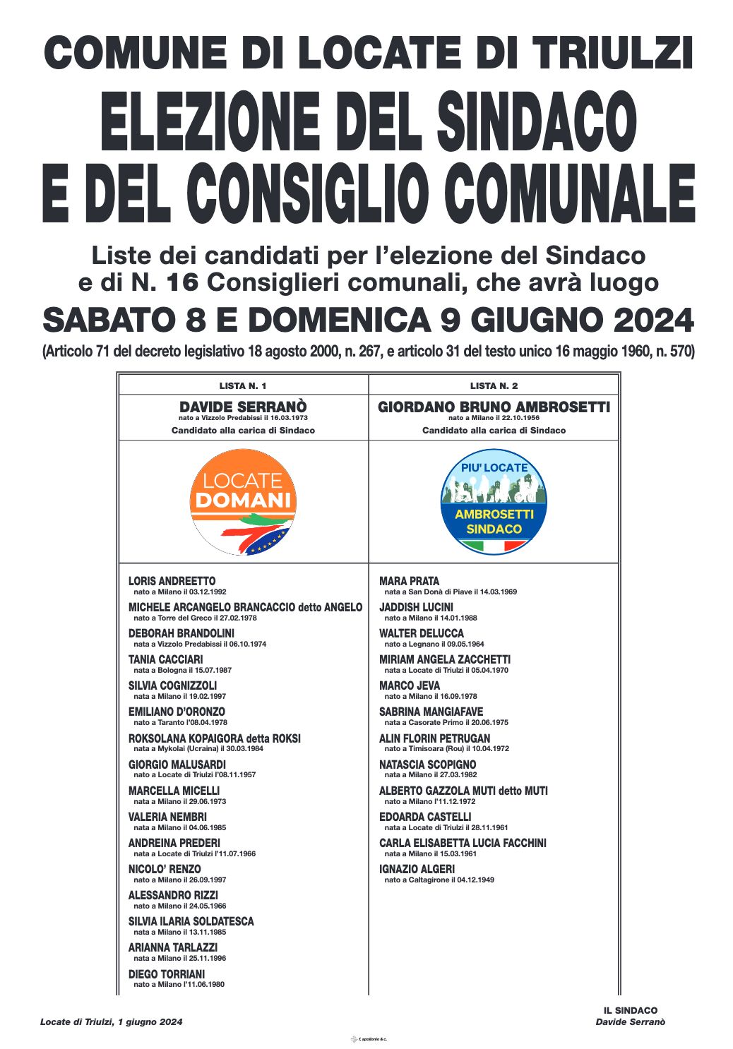 Sabato 8 e domenica 9 giugno si svolgerà il primo turno delle elezioni amministrative 2024, per l’elezione diretta di sindaco e consiglio comunale in numerosi Comuni, tra cui Locate di Triulzi.