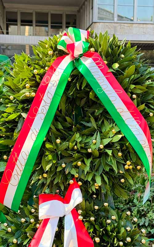 Il gonfalone del Comune di Sesto San Giovanni sveltolava in piazzale Loreto a Milano, sabato 10 agosto, in occasione della cerimonia in ricordo delle 15 vittime della strage del 1944. Nell’ottantesimo anniversario la piazza è stata intitolata ai 15 martiri di piazzale Loreto.