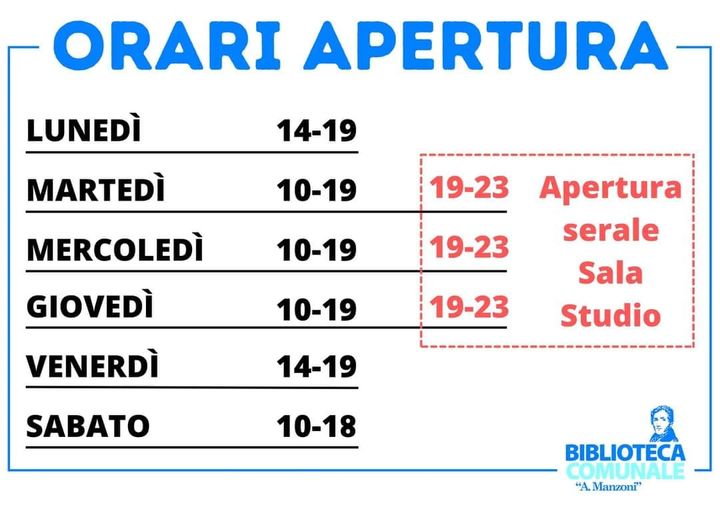 Il Comune di Pioltello informa la cittadinanza che da lunedì 19 agosto la Biblioteca Comunale “A. Manzoni” Pioltello riprende l’attività secondo l’orario classico.
