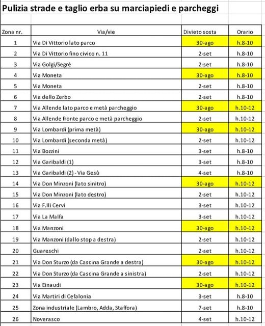 Qui sotto trovate la scheda del piano di lavoro dal 30 agosto al 7 settembre inclusi, e l’indicazione dei relativi divieti di sosta che sul posto verranno segnalati. Ci scusiamo fin d’ora per qualche possibile disagio, che speriamo compensato da un positivo risultato in un servizio che necessita importanti miglioramenti.