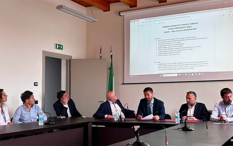 Due rotatorie per migliorare sicurezza e viabilità lungo la SP39 Cerca, tra i comuni di Tribiano e Mediglia: è quanto emerso durante la conferenza stampa nella sala consiliare del comune di Tribiano. A illustrare i dettagli dell’intervento sono stati il sindaco Roberto Gabriele, l’assessore regionale ai trasporti Franco Lucente, l’ingegner Gabriele Olivari per Città Metropolitana e Loris Molteni, responsabile per Trm Group.