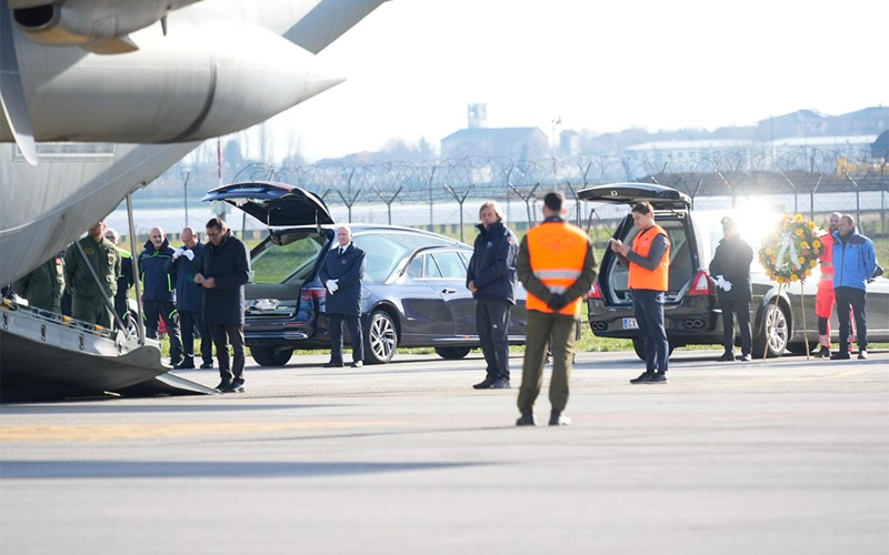 L’aeroporto di Milano-Linate ha accolto oggi il rientro in Italia dei feretri di cinque cittadini italiani deceduti nel drammatico incidente di Crans-Montana. Le salme sono giunte presso lo scalo militare a bordo di un velivolo C-130 dell’Aeronautica Militare, decollato in mattinata dall’aeroporto di Sion, in Svizzera. Il trasferimento è stato operato in stretta collaborazione con le autorità elvetiche, che hanno accompagnato i feretri dall’obitorio fino all’imbarco.