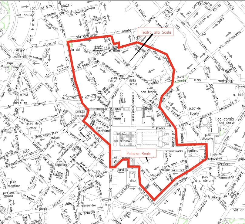 - I divieti coinvolgeranno via Manzoni, via Boito, via Filodrammatici, piazza Duomo, via dei Mercanti e via Pecorari fino a piazza Fontana.