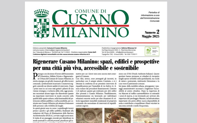 Il numero di maggio del Notiziario Comunale è on line e in distribuzione presso le cassette postali delle abitazioni dei Cittadini di Cusano Mila...