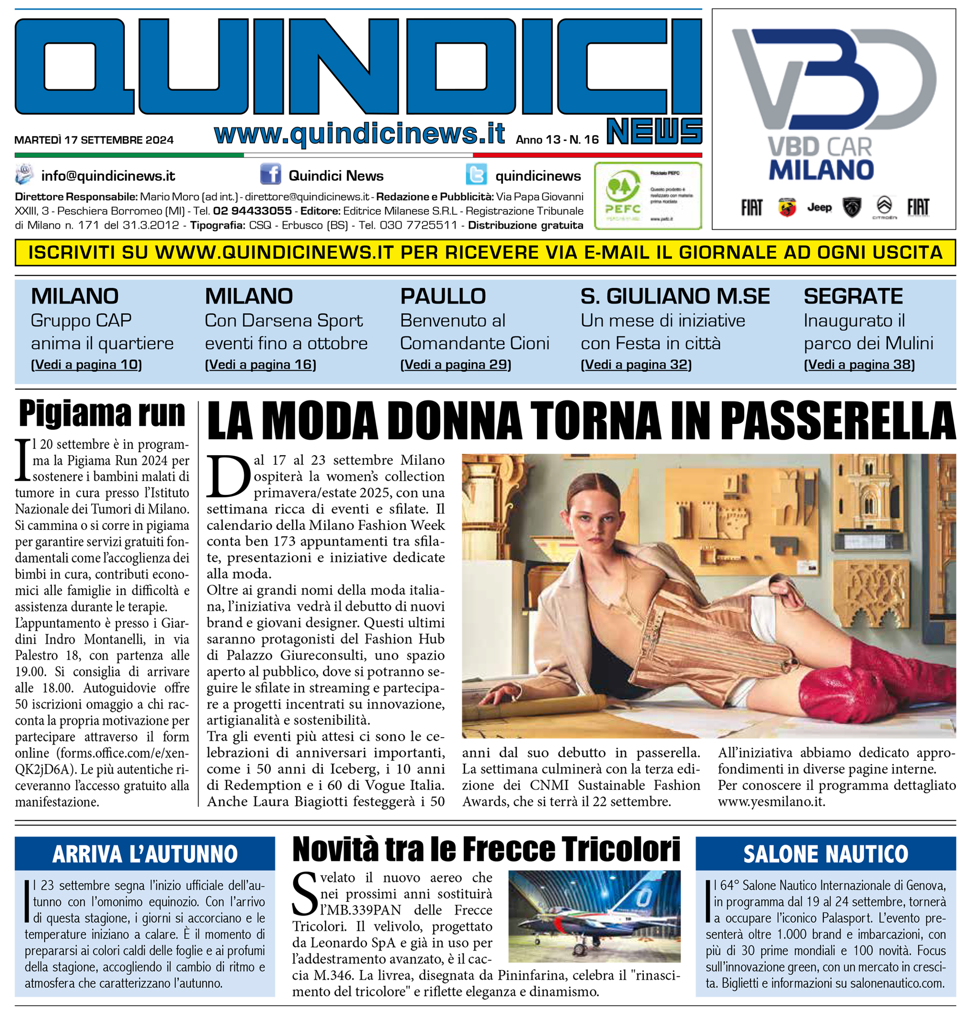 Ecco il nuovo numero di Quindici News: uscita numero 15 del 3 settembre 2024. Scaricalo subito: