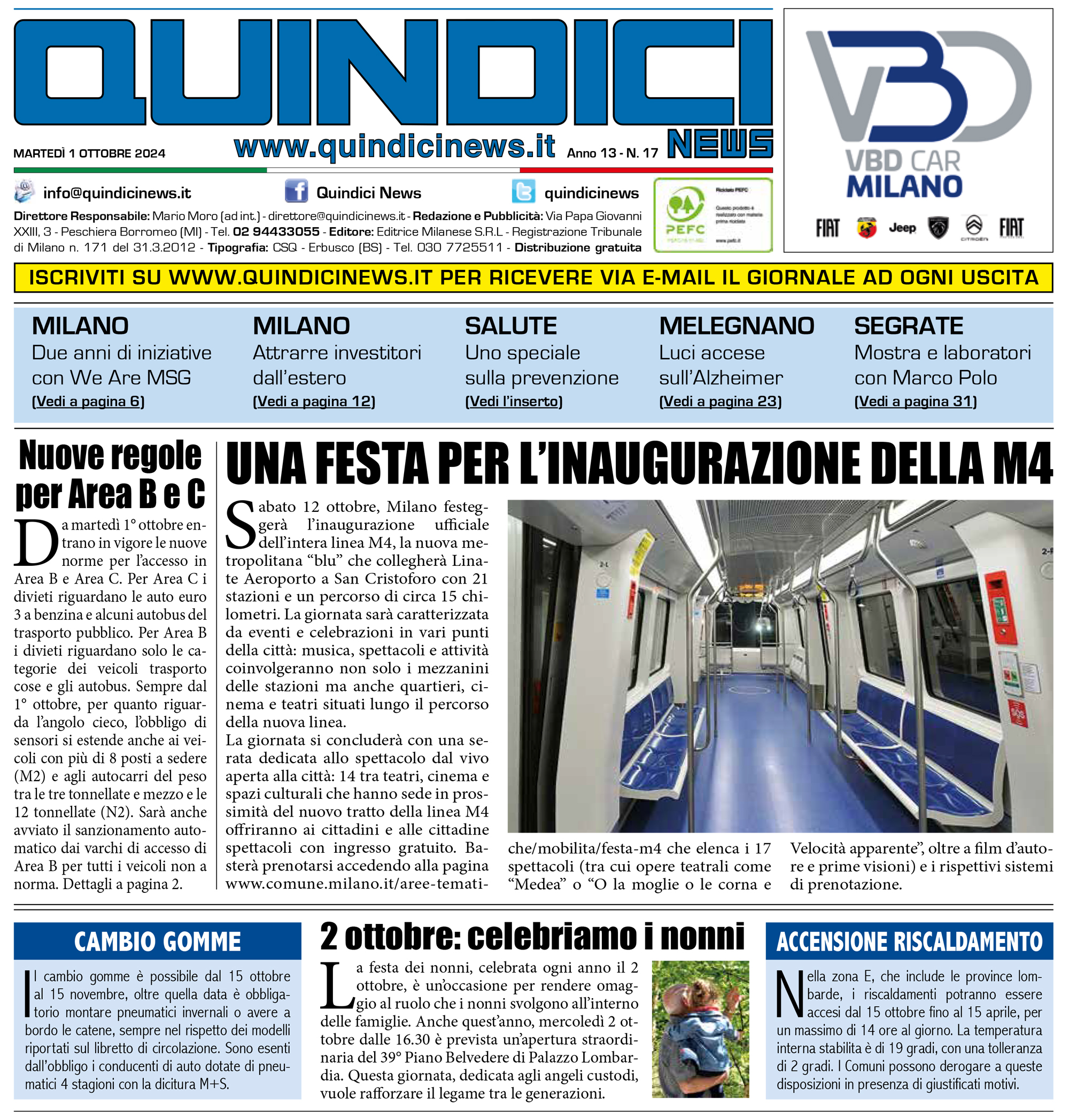 Ecco il nuovo numero di Quindici News: uscita numero 17 del 1° ottobre 2024. Scaricalo subito: