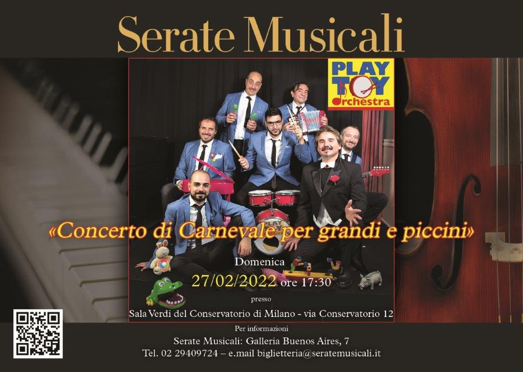 Serate Musicali promuove per domenica 27 febbraio alle 17.30 nella Sala Verdi del Conservatorio Verdi «Concerto di Carnevale per grandi e piccini...